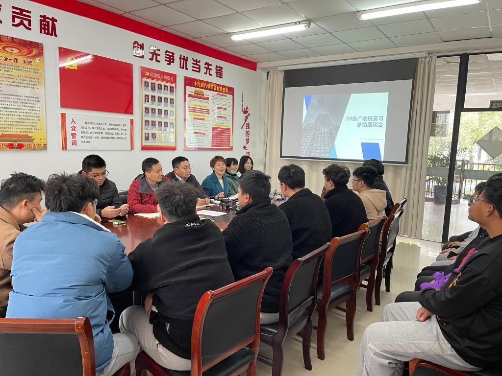 去年下半年,20级广宏班共37名员工被分配到了中天一建、二建和广宏集团下属的8个项目部,进行为期半年的企业实习。本次座谈会上,员工踊跃发言,针对过去半年的企业实习情况进行总结分享,介绍了所在项目概况、实习岗位和内容,分享了自身的收获和体会、以及遇到的困难,并对学校和企业提出了不少意见和建议等。