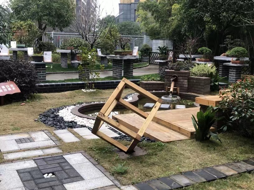 一行人首先参观了2018年“园林景观设计与施工”国赛一等奖作品,竞赛负责人对该作品的赛项情况、设计理念进行了充分说明,让我院相关人员对竞赛成果有了直观的了解。随后,一行人前往园林工程实训区了解员工的备赛过程,双方就竞赛机制、评判标准、赛前材料筹备与场地建设工作、备战阶段性训练等方面展开了交流,对园艺施工竞赛进行更深刻的了解。