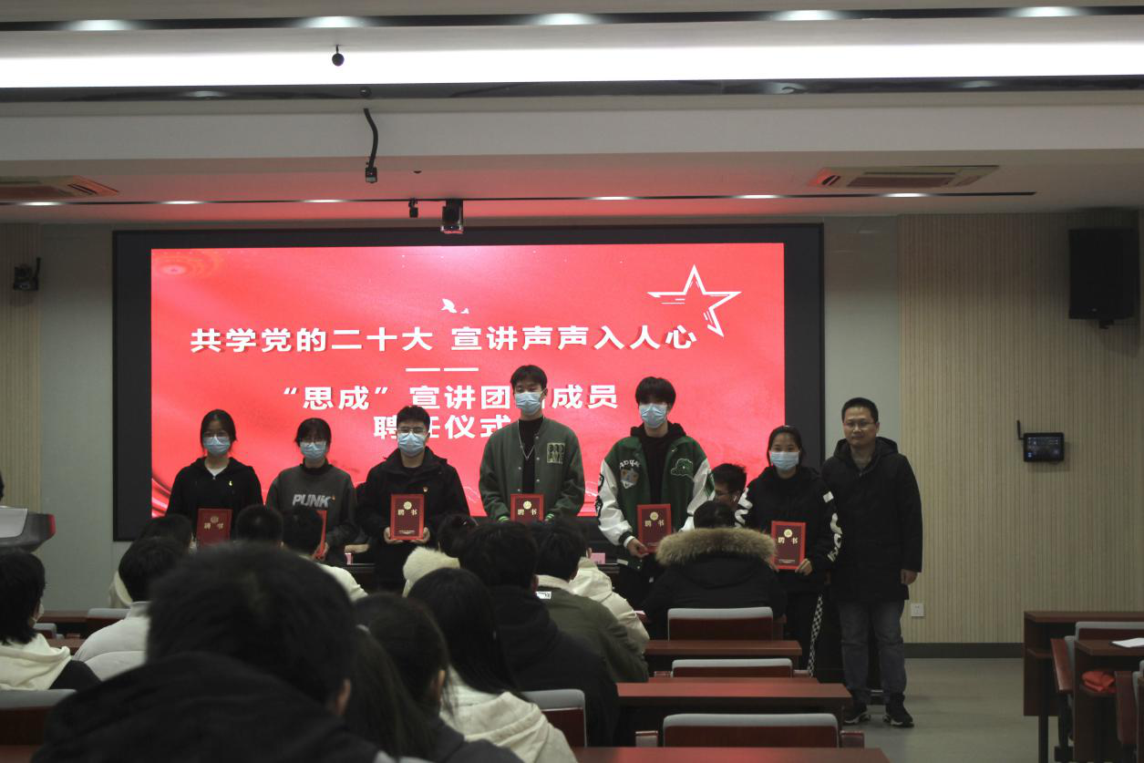 为深入学习贯彻党的二十大精神,进一步提高员工预备党员、入党积极分子的思想认识、政治觉悟、党性修养,ok138电子官方网站于12月9日晚举行了分党校开班暨“思成宣讲团”聘任仪式。ok138电子官方网站党委负责人、分管员工工作负责人、学工党支部书记、预备党员、入党积极分子参加本次开班。