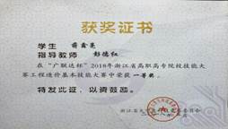 浙江省工程造价技能竞赛一等奖         浙江省建筑装饰应用技术团体三等奖