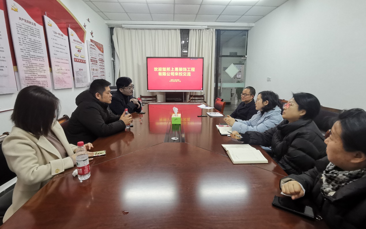 2月13日下午,ok138电子官方网站负责人和建筑装饰工程技术专业员工们接待了来自杭州楚邦上易装饰工程有限公司一行人,就1月11日ok138电子官方网站走访该企业初步达成的协作意向进行深入交流。