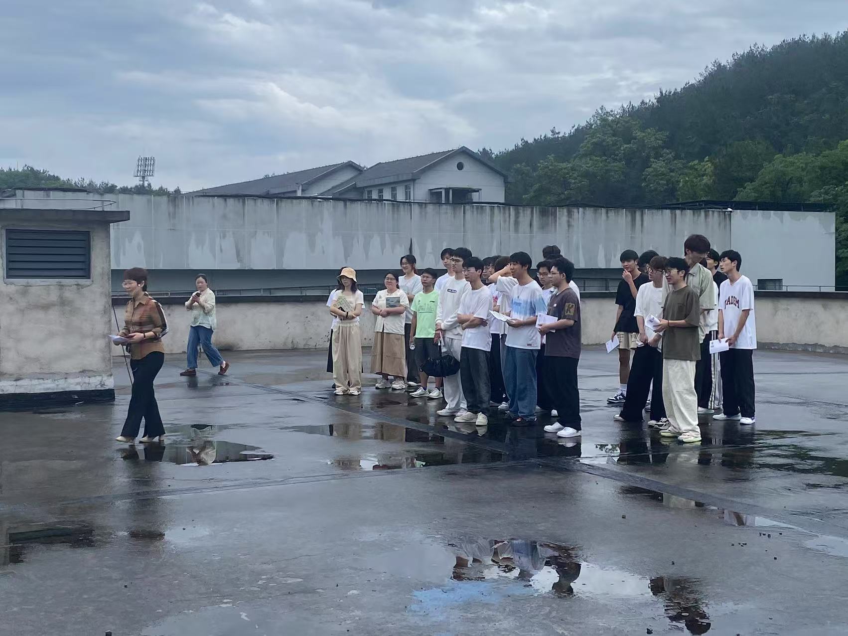 活动伊始,师生们前往思成楼屋面,陈老师先让员工自主观察,提出问题,然后对照实际工程,详细讲解屋面构造层次、防水材料铺设工艺以及防水节点处理等知识,同时,结合教材内容,向员工系统讲解了屋面与防水工程施工的基本原理、技术要点和质量标准,员工们认真聆听,不时提出疑问,现场互动氛围热烈。