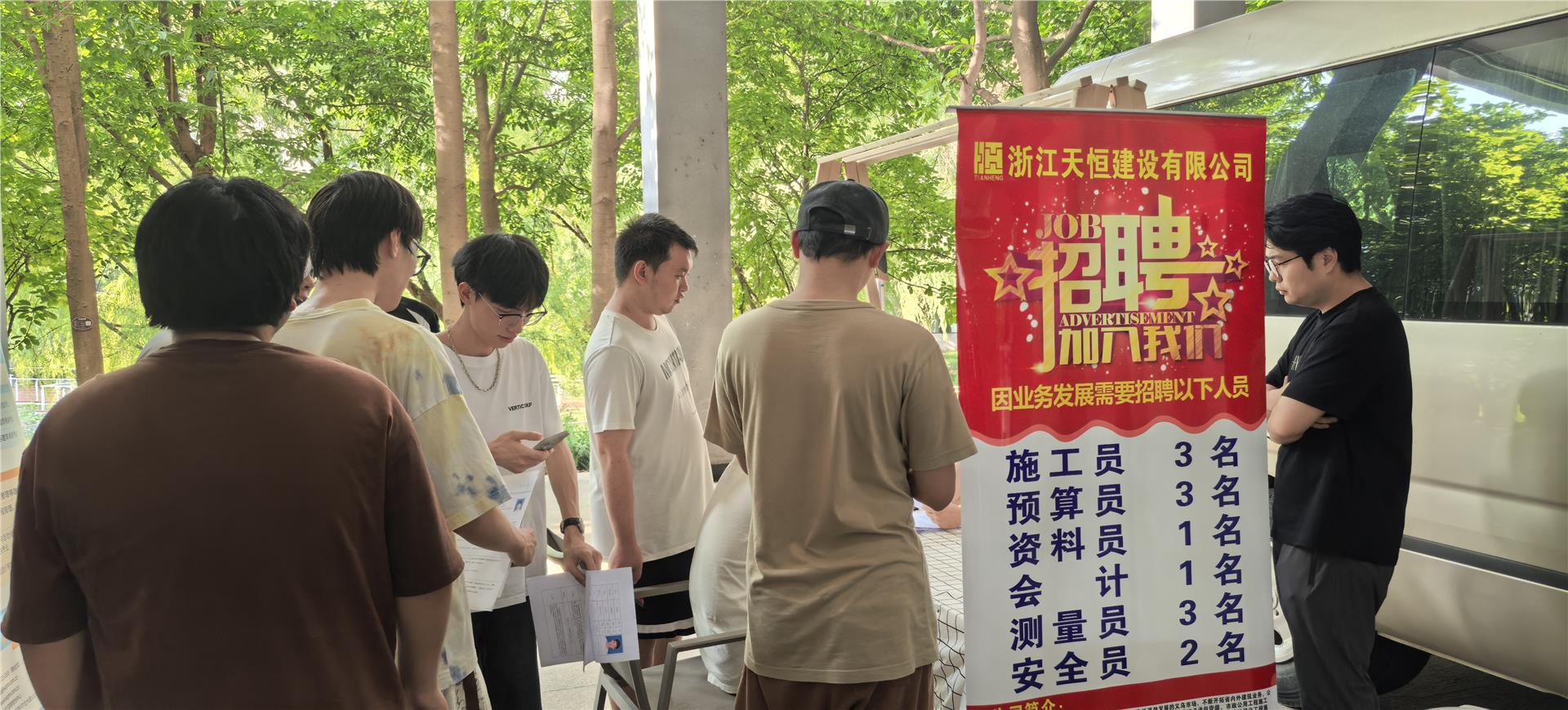共有五洲工程顾问集团有限公司、中天建设集团有限公司第一建设公司等26家企业参与线下的实习岗位双选会,为员工提供了多样化的岗位选择。企业代表介绍了企业的基本情况、岗位需求、职业发展路径以及薪资待遇等相关信息,员工们积极与企业代表交流,咨询感兴趣的问题,主动投递简历。现场气氛活跃,员工们纷纷表达了对即将踏上实习岗位的期待和信心。