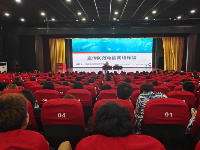随后,江东派出所民警王军伟为新生们开展防范电信网络诈骗宣传,王警官为大家详细解读了什么是电信网络诈骗、电信网络诈骗的常见形式以及如何宣传防范电信网络诈骗。王警官向同学们讲述了近两年来学校发生的多起诈骗事件,诈骗手段五花八门,令人防不胜防,同学们纷纷表示要小心谨慎,以免上当受骗。最后,王警官温馨向同学们提示防范电信网络诈骗“五不要”,不要轻信不明对象及可疑信息、不要因贪小利而受违法信息的诱惑、不要轻信不明电话、短信链接、不要向陌生人汇款、转账、不要泄露个人信息,特别是银行卡信息。