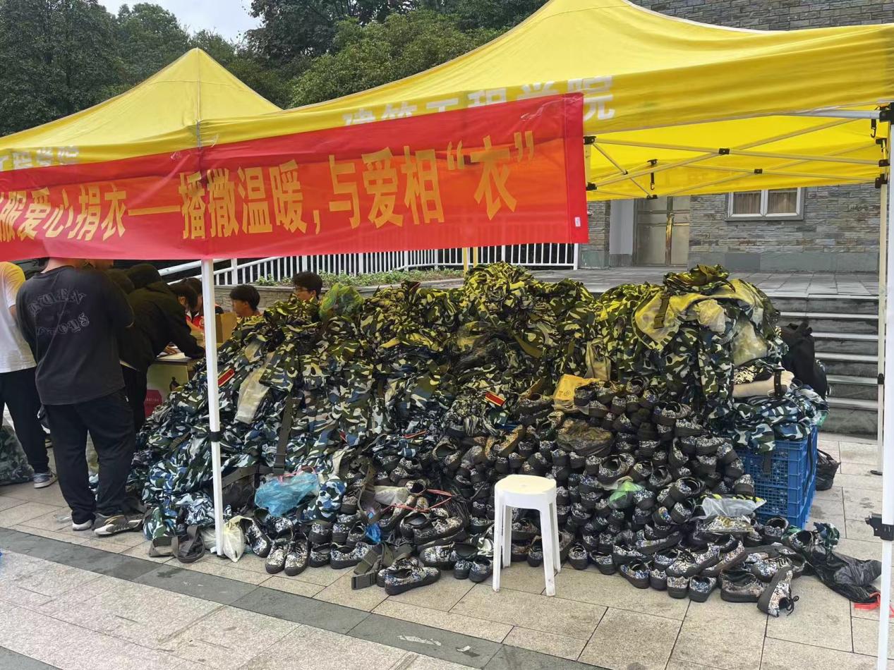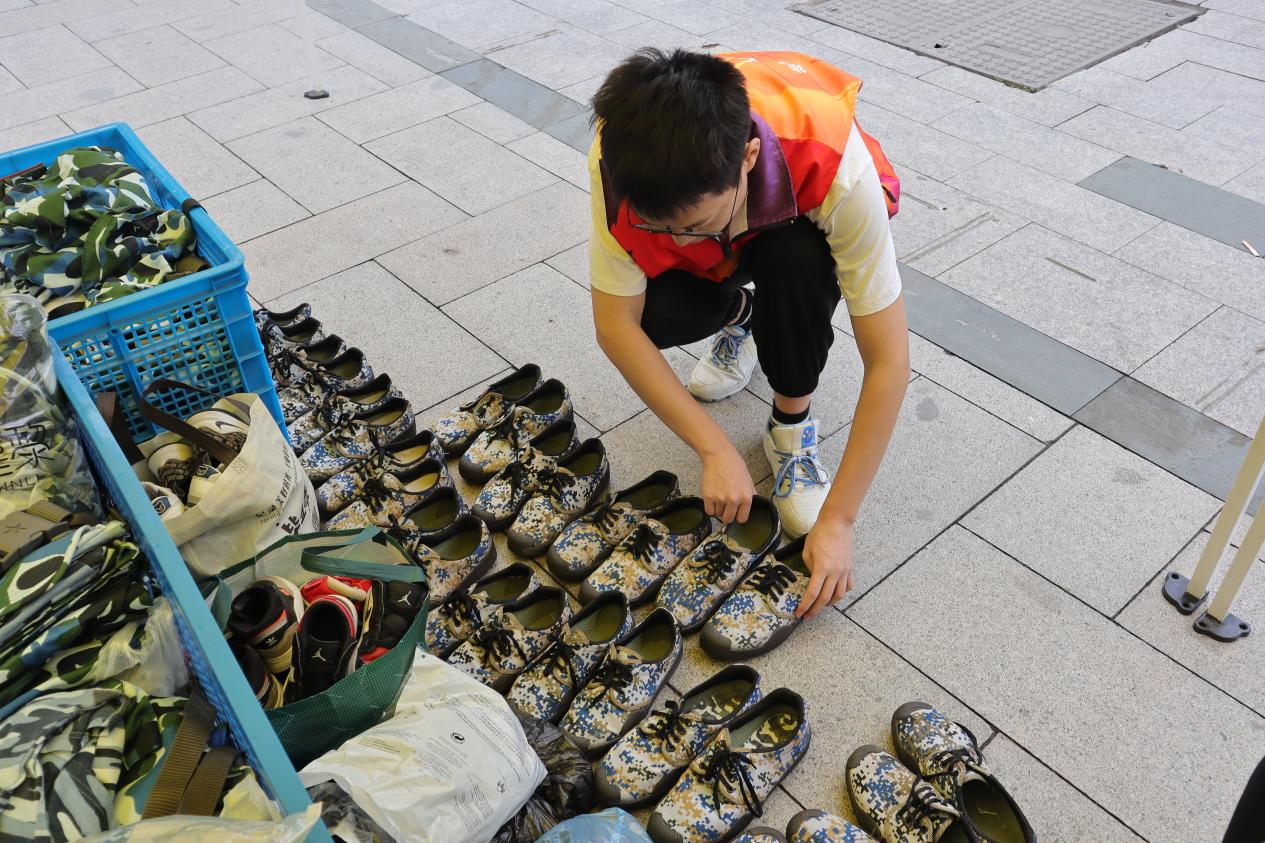 活动期间,同学们纷纷将自己的军训服清洗干净,整齐地叠放在指定地点。志愿者们则不辞辛劳,一件件检查、分类、打包,积极联系义乌市爱心转运站,确保这些军训服能够顺利运往需要它们的地方。