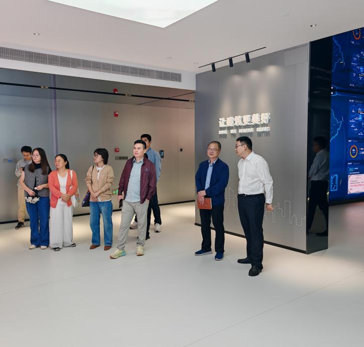 交流活动中,双方一同参观了浙里建·未来建造中心,中心展示了智慧施工和智慧运维的先进成果,为双方的交流提供了丰富的实例。在随后的座谈会中,杭州建研科技有限公司郑夏翊总经理详细的描绘了智慧建造的未来建造科技蓝图。从最初的探索尝试到如今构建起的智慧建造成熟体系,这一过程中积累的丰富经验无疑给ok138电子官方网站提供了极具价值的参考与借鉴。双方就土木工程的办学理念、方法及其面临的挑战与机遇展开的深入探讨,无疑为这一传统学科注入了新的活力与视角。通过这次富有成效的科技对接活动,大家达成了广泛共识:土木工程的未来在于其能否成功转型升级为智慧建造。
