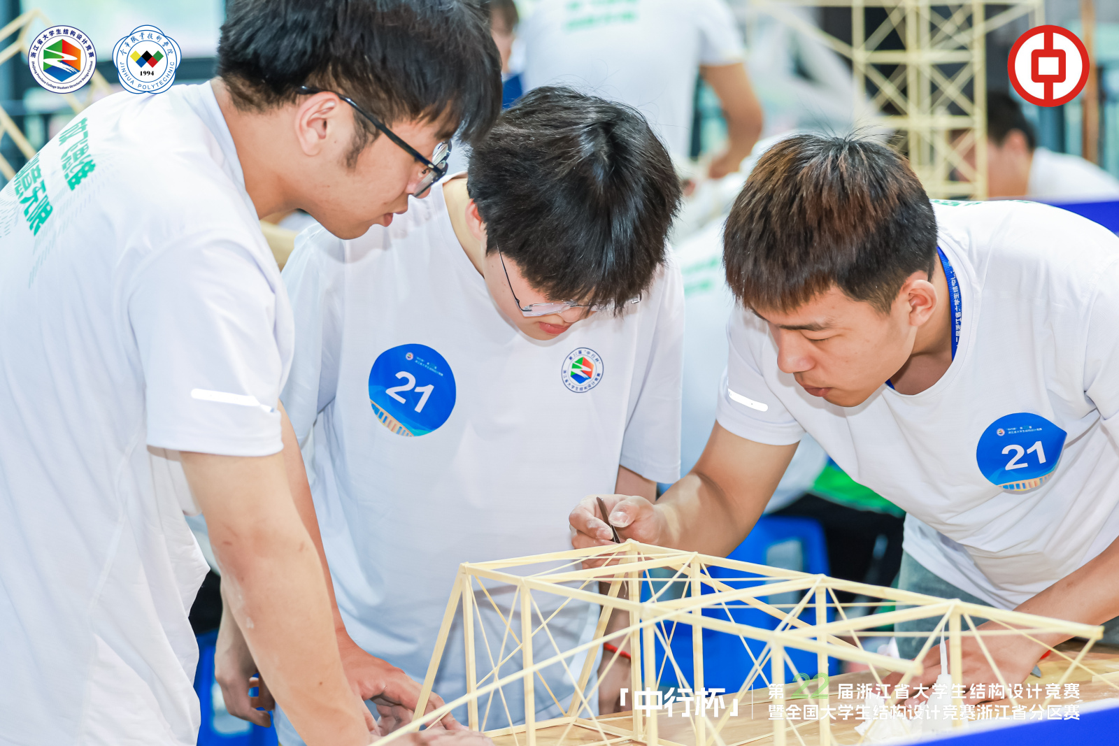 本次竞赛题目为悬挑观景平台结构设计与模型制作,要求员工设计制作“T”字型悬挑观景平台结构模型,并测试其模拟承受风载及移动人群重力作用下的平台结构的安全可靠性。第一级加载用3只钢球模拟在通道和平台上移动的人群;第二级加载需要在平台一侧悬挂弹簧砝码,通过弹簧振动来模拟模型承受风载及人群移动时产生的振动。