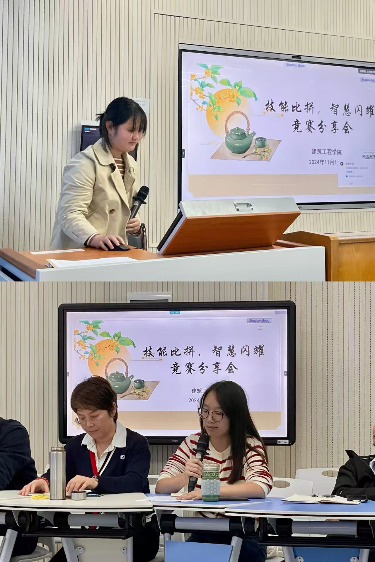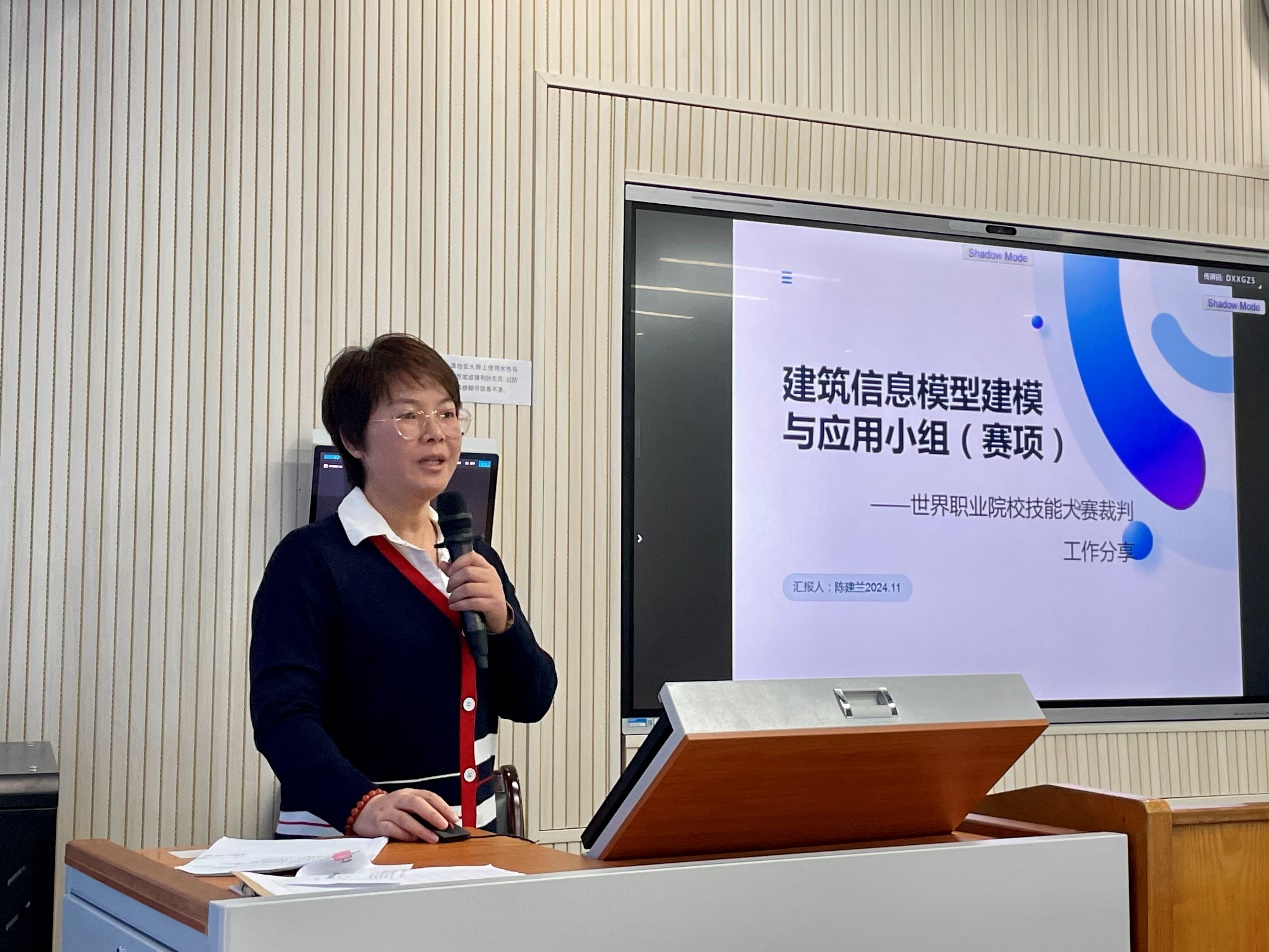 紧接着,周洁老师复盘了她带队参加世界职业院校技能大赛总决赛获得铜奖的全过程。她强调,竞赛要求的变化要求指导员工和员工必须具备快速应变的能力,过程中应当以评委的关注点作为准备重点。陈小琴老师总结了她近两年指导员工参加“装配式建筑智能建造”赛项的经历。她认为建筑类专业准备竞赛时一定要“走出去、多看看”,通过实地调研和学习,将理论知识具象化。同时,实时关注员工心理健康,也是整个备赛过程中重要的一环。